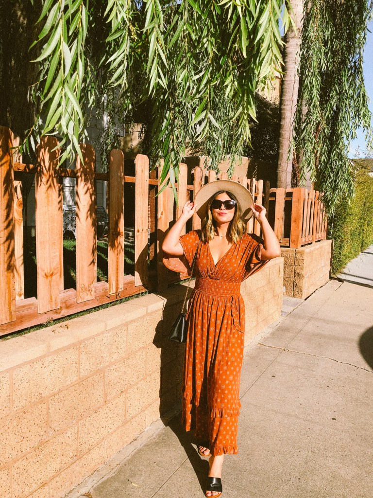 I love the effortless style of throwing on a dress and hat, and since I avoid wearing jeans at all costs, I will be rocking a variation of this look for the next few months. I don’t mind, though, because it’s the perfect outfit for transitioning into fall in Southern California.