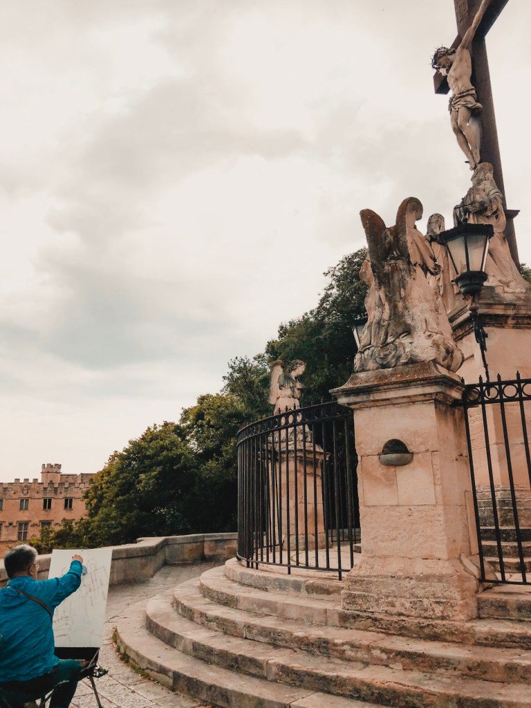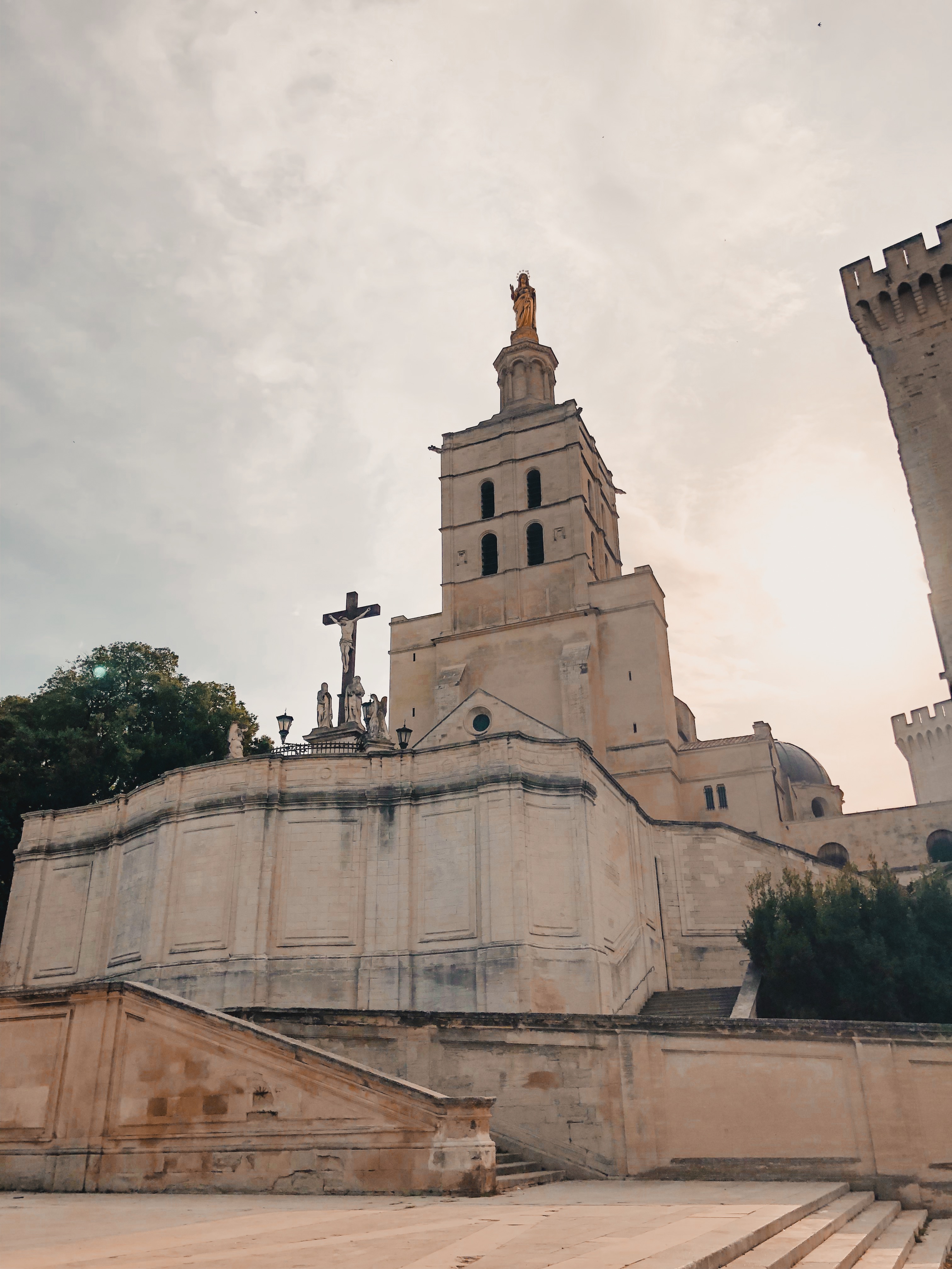 Alongside the palace lies the Cathédrale Notre-Dame des Doms d’Avignon (Avignon Cathedral). A gilded Virgin Mary stands atop the bell tower and overlooks the square. As we were walking past the entrance to the church, artists were stationed to capture the surrounding beauty. I could’ve sat there and watched them all day.